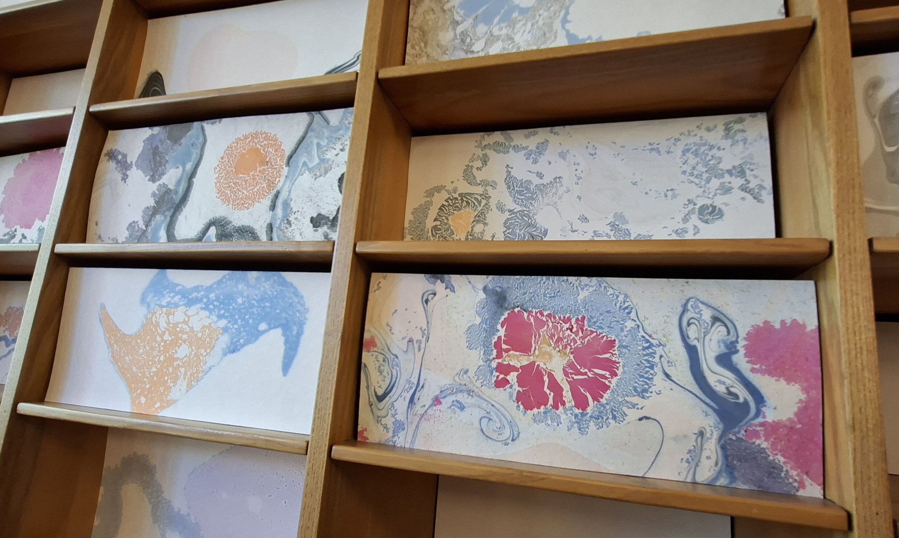 Die Technik des Marmorierens gelangte über die Seidenstrasse in die islamische Welt und entwickelte sich zur Technik des «Ebru» (Wolke).