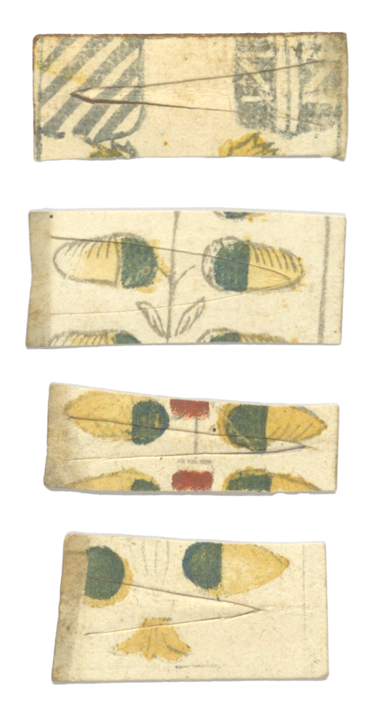 Alle genannten Objekte können nur die Stelle anzeigen, an der ein Buch aufgeschlagen werden soll. Nützlicher ist eine historische Technik, mit der ausser der gesuchten Seite auch ein bestimmter Textabschnitt markiert werden kann: Man faltet einen kleinen Zettel in der Mitte und schneidet ihn so ein, dass eine spitze Zunge entsteht. Nun kann er auf den Blattrand gesteckt und zur richtigen Zeile geschoben werden. Buchzeichen dieser Art fanden sich in einer Abschrift des Luzerner Stadtrechts aus dem 16. Jahrhundert. Sie wurden aus alten Jasskarten ausgeschnitten.