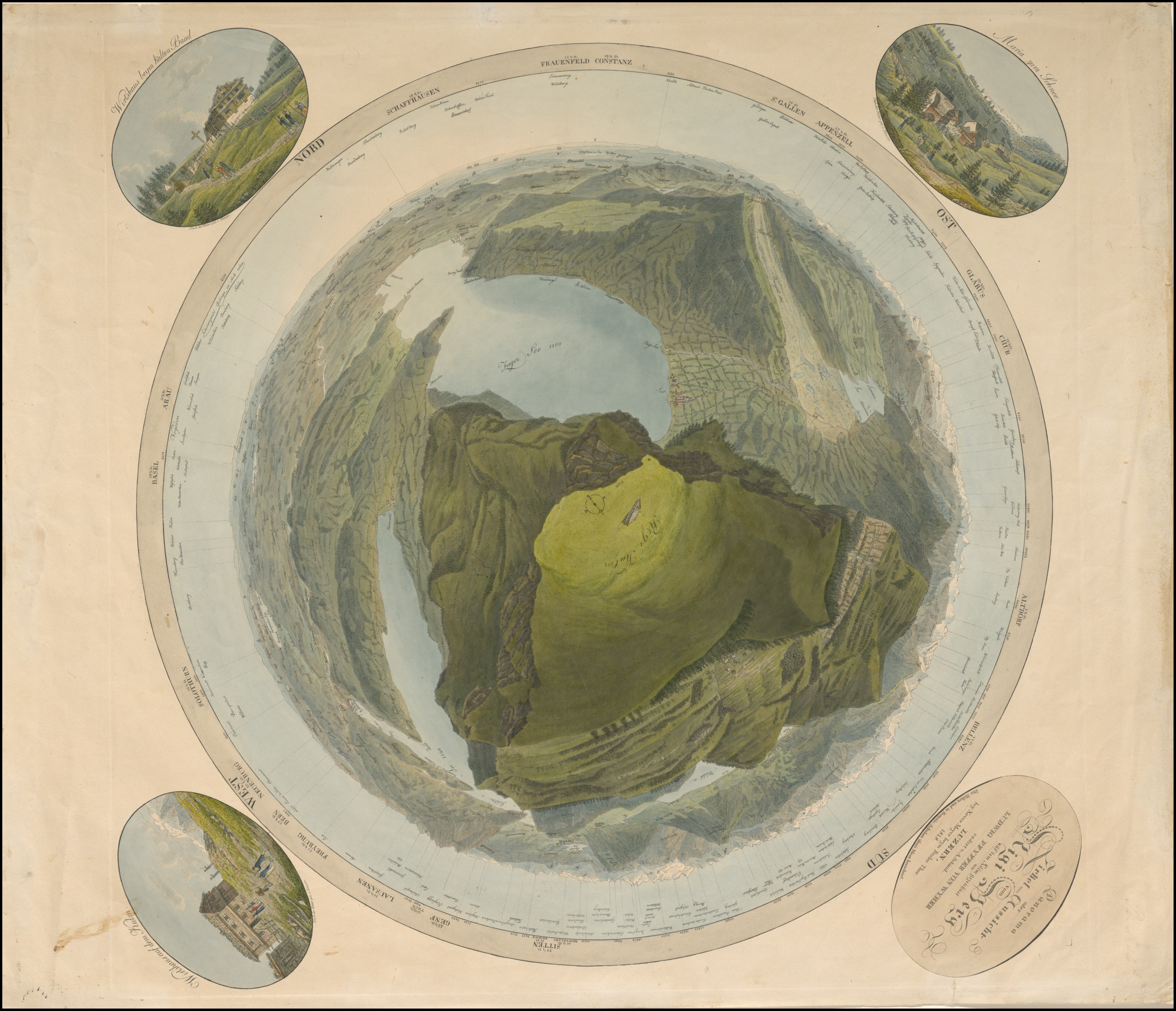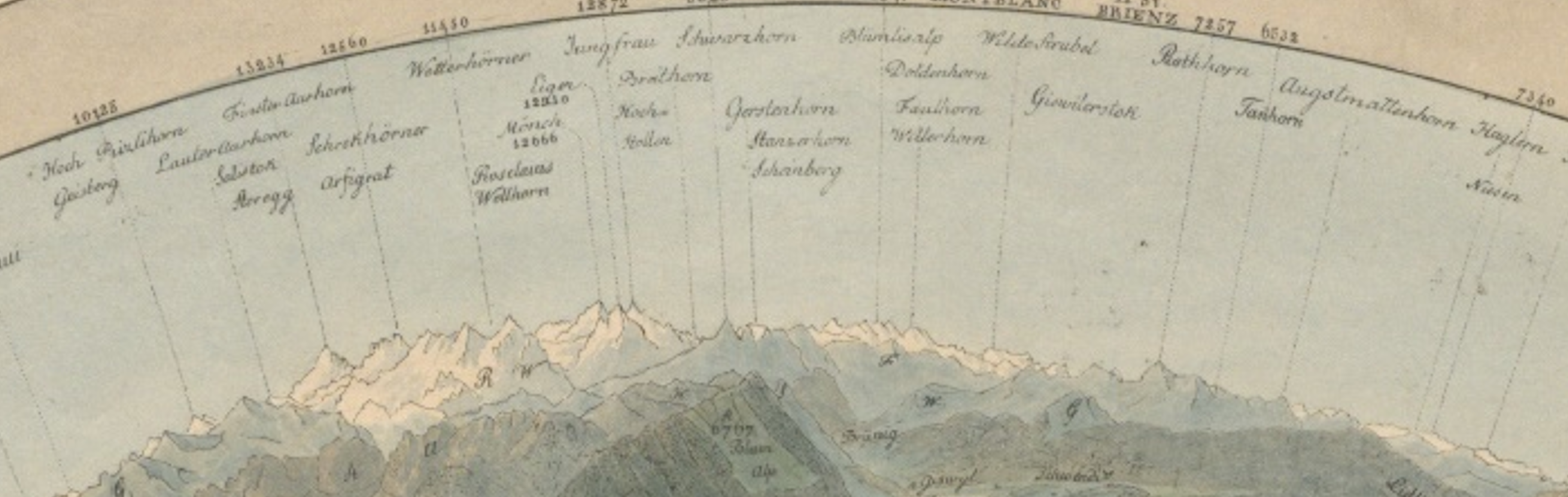 Panoramen waren im 19. Jahrhundert beliebte touristische Begleiter. Als Sonderform der topografischen Landschaftsdarstellung bewegten sie sich zwischen Kunst und Wissenschaft, zwischen Anschaulichkeit und Repräsentation der sichtbaren geografischen Wirklichkeit. Aus dem Griechischen entlehnt, setzt sich der Begriff «Panorama» aus den beiden Wörtern «pan» (all, ganz) und «horama» (Sicht) zusammen.